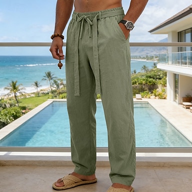 Per uomo Pantaloni di Lino Pantaloni Pantaloni Estivi Pantaloni da Spiaggia Coulisse Elastico in vita Tinta unica Comodità Traspirante Lunghezza intera Quotidiano All'aperto Spiaggia Vacanza Moda