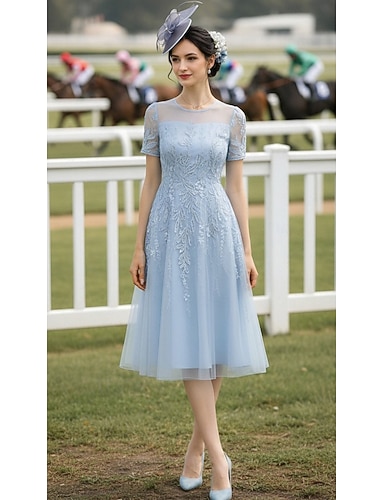 Linea ad A Abito Lunghezza al ginocchio Vestito da Festa Abito da Cocktail Abito da invitata a nozze Abito da cerimonia per signora Manica Corta Girocollo Elegante Formale Ospite di nozze Serata