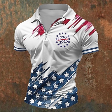 4 luglio 2026 250° Giorno della Memoria Maglietta a Manica Corta in Stile Ufficiale con Stampa 3D della Bandiera USA per Uomini