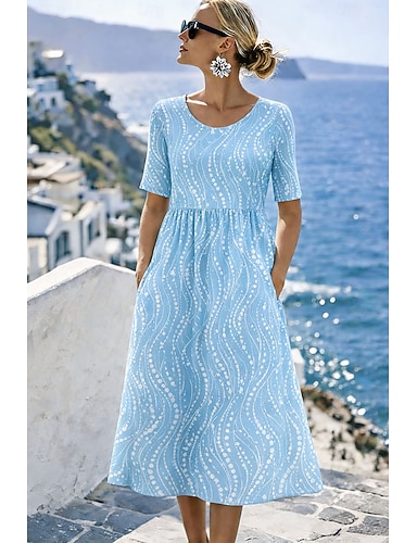 Per donna Abito Midi Abito a trapezio Casual Quotidiano Spiaggia Vestibilità comoda Grafico Geometrico Manica Corta Girocollo Blu Viola Verde Blu scuro Estate Primavera