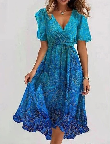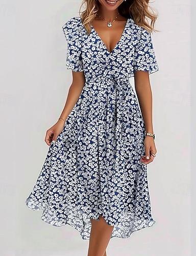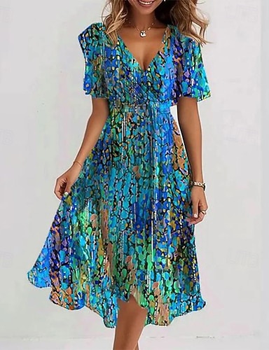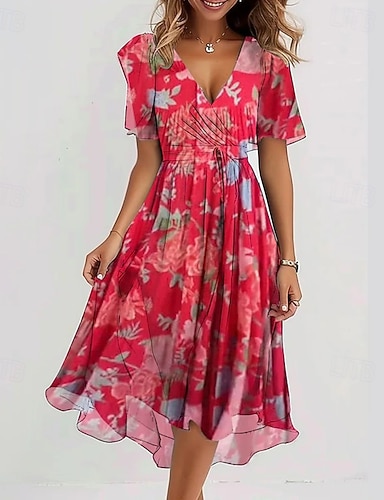 Linea ad A Lunghezza al pavimento Abito Floreale Abito da Sera Elegante Vintage Floreale Manica Corta Scollo a Barca Festa in giardino Matrimonio Tasca Raso Jacquard con Stampa floreale Fiore