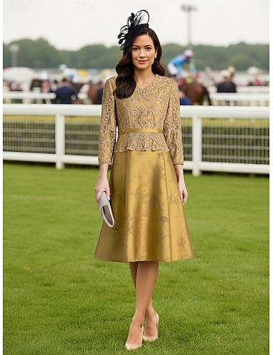 Abiti Formali A-Line di Lunghezza al Ginocchio Abito da Sera Abito per Madre della Sposa Manica Lunga Collo a V Elegante Vintage Lussuoso Formale con Fiore