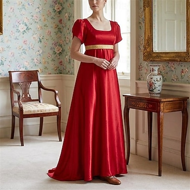 19° secolo Periodo di reggenza Lunghezza alla caviglia Vestito Maniche corte Principessa Gentildonna Nobildonna Tinta unica Collo quadrato Costume Per donna Reale Halloween Carnevale Tè LARP Fiera