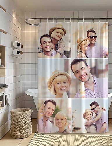 Tenda da doccia fotografica personalizzata con 12 ganci - Regalo di matrimonio personalizzato per coppie decorazione per bagno tessuto impermeabile e lavabile carica la tua immagine foto per bagno