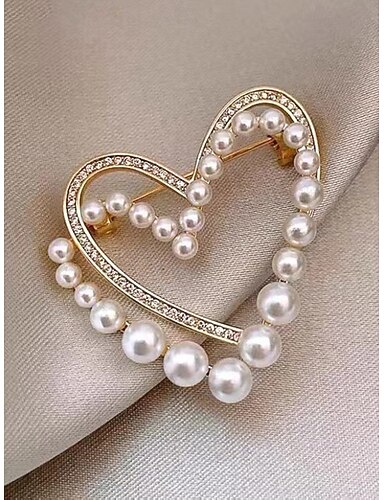 Spilla da donna a forma di cuore in lega e perle finte, disponibili in diversi modelli, ideale per San Valentino, matrimoni e uso quotidiano