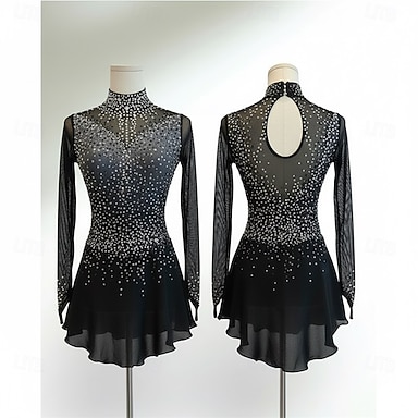 Abito da pattinaggio artistico Per donna Ragazze Pattinaggio sul ghiaccio Vestito Nero Patchwork Rete Alta elasticità Allenamento Competizione Vestiti da pattinaggio sul ghiaccio Classico Cristallo
