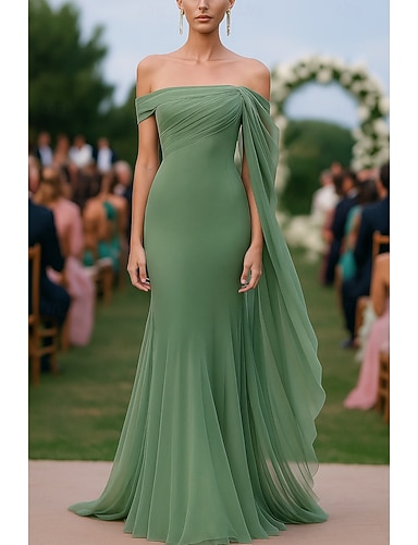 Tubino Colonna Lunghezza al pavimento Abito da ballo con mantello Abito da Sera Abito formale Elegante Senza Maniche Senza Spalle Matrimonio Formale Mantelle Chiffon con Volant Scialle