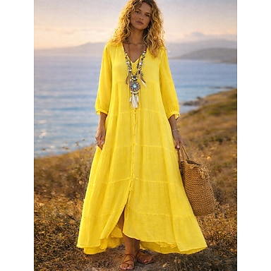 Linea ad A Lunghezza alla caviglia Vestito da Festa Abito da Cocktail Abito da invitata a nozze Abito da cerimonia per signora Manica 3/4 Scollo a V Elegante Lussuoso Brillare & Splendere Cocktail