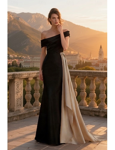Abito a linea A lunghezza fino al pavimento abito da prom abito da festa abito cocktail abito per madre della sposa maniche corte scollo off-shoulder elegante vintage taglie forti formale con pieghe