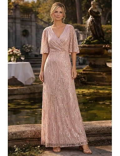 Linea ad A Lunghezza alla caviglia Abito da invitata a nozze Abito da sera Abito da cerimonia per signora Mezza Manica Scollo a V Elegante Semplice Abbellito Formale Ospite di nozze Derby del Kentucky