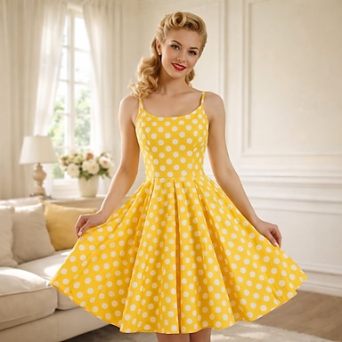 Classico Anni 1950 Abito da cocktail Vestito Abito Swing Senza maniche Canotta Gentildonna A Pois Linea ad A Scollo Tondo Costume Per donna Carnevale Mascherata Balli di fine anno Ufficio / Carriera