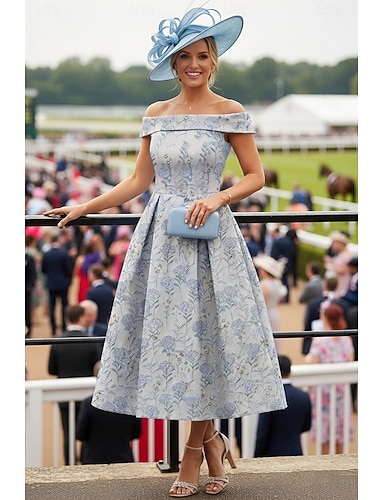 Aderente & Svasato Lunghezza al ginocchio Abito Formale Abito Derby Abito da sera Abito da cerimonia per signora Manica 3/4 Senza Spalle Elegante Vintage Formale Derby del Kentucky Tessuto