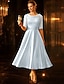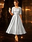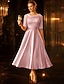 Linea ad A Lunghezza Tè Vestito da Festa Abito da Cocktail Abito da invitata a nozze Abito da cerimonia per signora Mezza Manica Scollo Tondo Elegante Vintage Ospite di nozze Raso Pizzo con