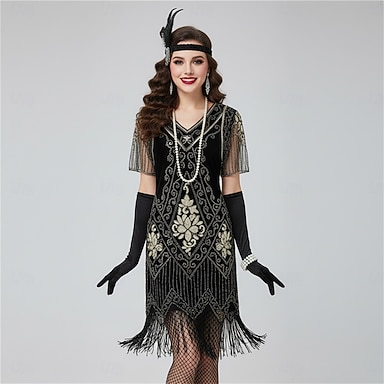 Set Anni Ruggenti Anni 1920 Abito Flapper Abito da cocktail con accessori Il grande Gatsby Ragazza Flapper Paillettes Frangia con nappe Frangia di nappa Con lustrini Costume Per donna Costume