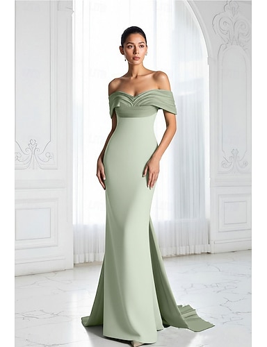 Sirena Tromba Lunghezza al pavimento Abiti da Ballo Abito da Sera Da principessa Abito formale Elegante Manica Corta Senza Spalle Formale Crepe Elasticizzato con Arricciato Volant