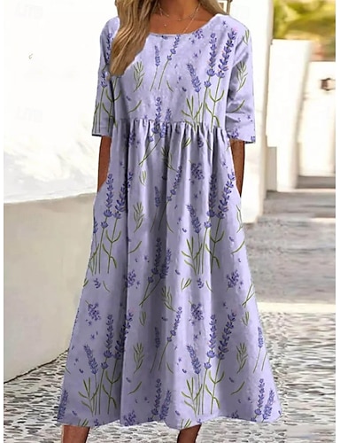 Linea ad A Lunghezza Tè Vestito da Festa Abito da Cocktail Abito da invitata a nozze Abito da cerimonia per signora Manica 3/4 Scollo a V Elegante Formale Serata Formale Ricevimento di matrimonio con