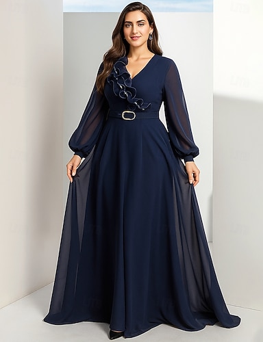 Abito da invitato matrimonio A-Line lunghezza pavimento abiti formali abito da sera abito madre della sposa manica lunga collo a V elegante vintage festa con balze