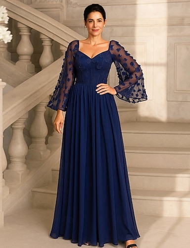 Linea ad A Lunghezza al pavimento Abito da invitata a nozze Abito Formale Abito da sera Abito da cerimonia per signora Manica Lunga Collo quadrato Elegante Vintage Festa Ferie Cocktail party Serata
