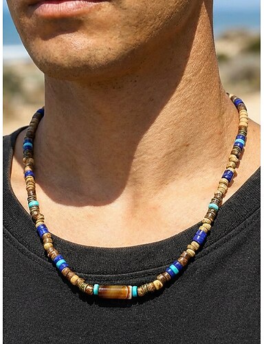 Collana da uomo con perline in pietra naturale – girocollo con pietre preziose nere e blu e ciondolo a forma di sole, chiusura a barilotto per abiti boho o da festa