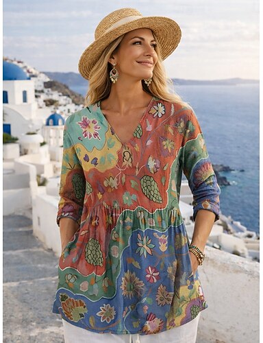 Per donna Camicia Bottoni Stampato Floreale Elegante Vintage Casual Manica Lunga Scollo a V Top lunghi Quotidiano Lavoro Ferie Arcobaleno Estate Primavera Autunno