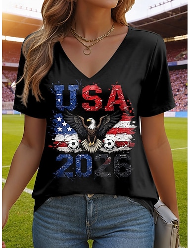 Maglietta da Donna World Soccer Match 2026 Stampa Grafica Lettera Elegante Classica Casual Maniche Corte Collo Tondo Regular Top Giornalieri Blu Nero Bianco Rosso Verde Estate Primavera
