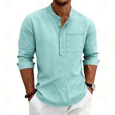 Per uomo maglietta Camicia Henley Maglia a maniche lunghe Liscio Colletto alla coreana Informale Per eventi Manica lunga Bottone giù Abbigliamento Leggero Classico Informale Muscolo