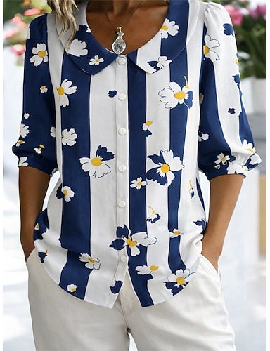 Per donna Camicia Camicia Boho Floreale Grafico A righe Elegante Bohemien Vacanza Collare Peter Pan Top Regolari Quotidiano Ferie Uscire Blu Giallo Verde Estate Primavera