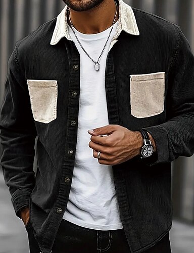 Per uomo Camicia di Velluto a Coste Testurizzato Casuale Affari Bavero Classico Manica Lunga Vintage Moda Blocco di colori Tasca Caldo Autunno Inverno Autunno & Inverno Vestibilità regolare Nero