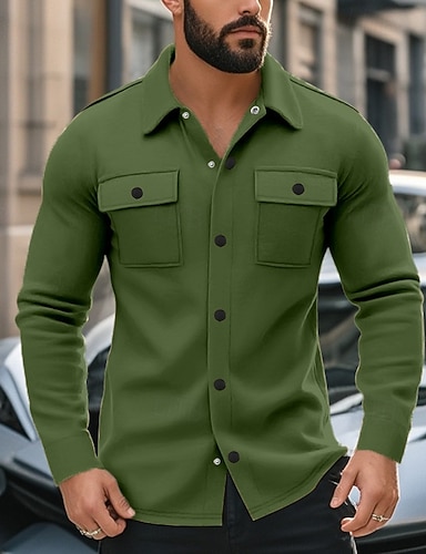 Per uomo Giacca Camicia Giacca di transizione Quotidiano Leggero Tasca Primavera Autunno Semplice Classico Bavero Cachi Giacca