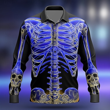 Camicia Costumi Uomo Scheletro Dito Medio Button Up Manica Lunga Stile Dark Punk Gothic Esterno Vacanza Estate Primavera Camicie Colletto Stampa 3D Blu Viola Arancione