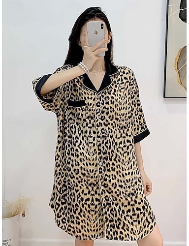 Per donna Set Pigiama Casual Comfort Leopardo Elastico in vita Shorts Quotidiano Casa Manica Corta Girocollo Nero Rosa Marrone Verde Grigio Estate Primavera Vestibilità comoda