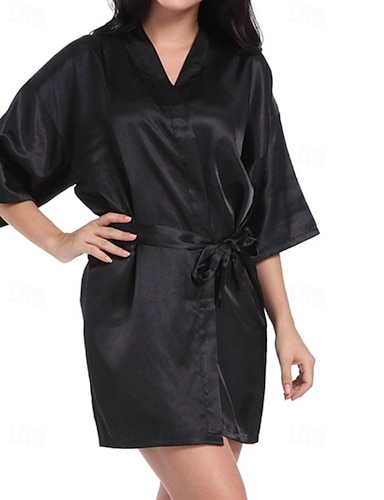 Per donna Accappatoio Casual Morbido Raso Colore Puro Quotidiano Casa Da letto Manica Corta Scollo a V Nero Bianco Verde chiaro Rosa Blu marino Estate Vestibilità regolare