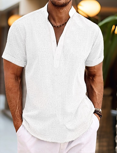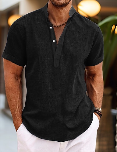 Per uomo POLO Magliette da golf senza colletto Informale Per eventi Colletto alla coreana Manica corta Di tendenza Essenziale Liscio Pulsante Estate Standard Nero Bianco Borgogna POLO