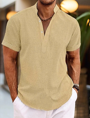 Per uomo Camicia Camicia di lino Camicia popover Camicia Estiva Abbigliamento da spiaggia Camicia con colletto alla coreana Semplice Vacanza Casuale Gray + verde Bianco + giallo Bianco + Verde Bianco