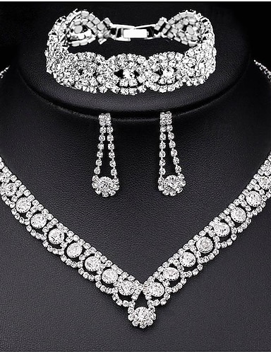 Set di gioielli da sposa 3 Perla Strass 1 Collana 1 Bracciale Orecchini Per donna Classico Dolce Adorabile Classico Goccia Amore Geometrico Parure di gioielli Per Matrimonio Lavoro Abbigliamento da