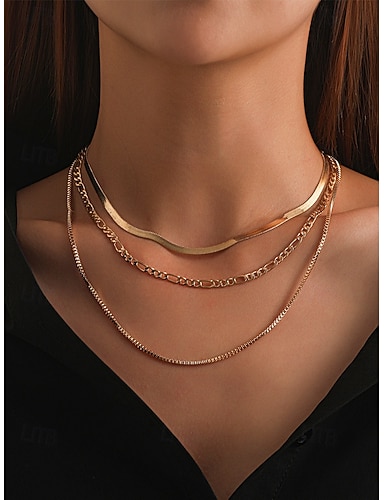 collana a catena a strati in oro da donna – set di choker in lega, gioielli minimalisti alla moda per feste, appuntamenti e serate fuori