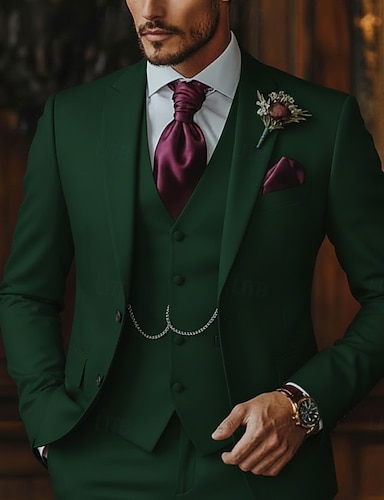 Uomo Smoking Abiti da sposa Matrimonio in Spiaggia Matrimonio primaverile Borgogna Verde scuro Primavera & Estate Tuta Bavero classico Festa Formale Tinta unita Vestibilità su misura 3 pezzi