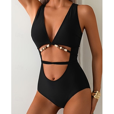 Per donna Costume da bagno One Piece Costumi da bagno con ritagli Tinta unita Gamba corta Asciugatura Rapida Elastico Senza Maniche Costume da Bagno Costume da bagno Surf Spiaggia Nuoto Estate