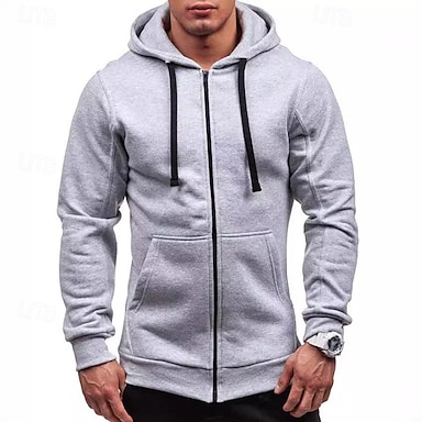 Per uomo Felpa con cappuccio e zip Giacca felpata Felpa con cappuccio Abbigliamento esterno Nero Blu Reale Blu Cachi Grigio chiaro Con Cappuccio Tinta unica Lavoro Casuale Abbigliamento casual alla