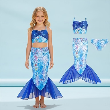 Sirena Principessa Vestito Costume per festa a tema Film Cosplay for Ragazze Bambini Halloween Carnevale Mascherata Vacanza Ferie Nuoto