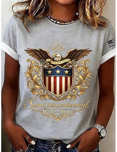 Giorno dell'Indipendenza Americana Per donna Maglietta Stampato Grafico Elegante Classico Casual Manica Corta Girocollo Top Regolari Quotidiano Sportivo Uscire Blu Estate Primavera 250th Anniversary