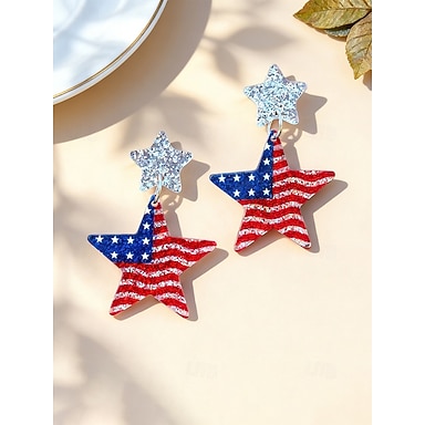 Orecchini pendenti patriottici da donna in acrilico, gioielli vistosi rossi, bianchi e blu in vari stili per la celebrazione del 250° anniversario dell'America, il giorno dell'indipendenza e l'abbigliamento casual di tutti i giorni.