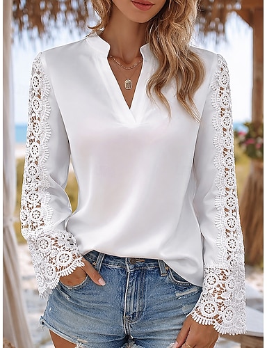 Linea ad A Lunghezza al pavimento Abiti da Ballo Elegante Vintage Festa Manica Lunga Scollo a V Ospite di nozze Ferie Pizzo Tulle con Ricamo