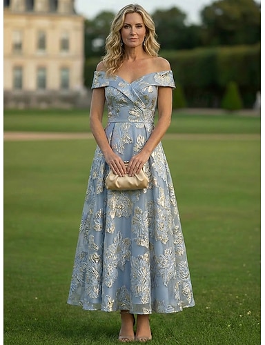 Linea ad A Abito Lunghezza alla caviglia Lunghezza Tè Abito da invitata a nozze Abito da cerimonia per signora Manica Corta Regina Anna Elegante Abbellito Casual Formale Ospite di nozze Ricevimento