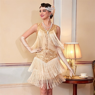 Anni 1920 Il grande Gatsby Abiti Fascia Flapper Il grande Gatsby Invitato al matrimonio Senza colletto Costume Per donna Halloween Carnevale Mascherata Feste Mascherata Ricevimento di nozze Adulti
