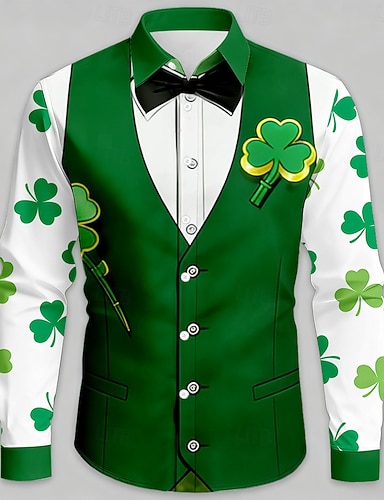 Giorno di San Patrizio Camicia da uomo con trifoglio Finto Collo e Design Giacca Arte Celtica Camicia Button Up Camicia a maniche lunghe Vintage Retro Festa Vacanza Primavera Autunno Camicia colletto