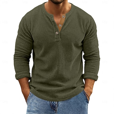 Per uomo Camicia di Velluto a Coste Maglia Henley Maglietta Manica Lunga Tinta unica Semplice Testurizzato Moda Designer Casual Bottoni Caldo Henley Casuale Quotidiano All'aperto Autunno Inverno