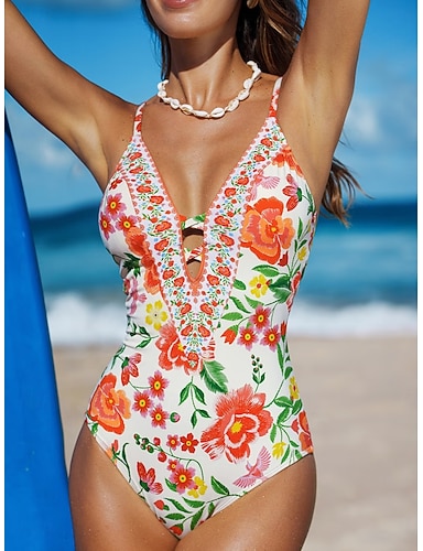 Per donna Costumi da bagno Intero Monokini Costume da bagno Controllo della Pancia Vita alta Snello Senza schiena Vacanza Abbigliamento da Spiaggia Floreale Scollo a V Senza Maniche Costumi da bagno