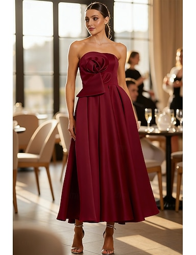 Linea ad A Lunghezza alla caviglia Abito da invitata a nozze Abito Formale Abito da sera Abiti da Ballo Elegante Senza Maniche Senza Spalline Balli di fine anno Formale Raso con Fiore ricamato