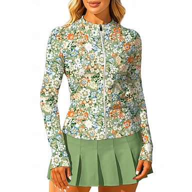 Per donna Geometrico Maglietta Maglietta sportiva Polo da golf Maglia da tennis Manica Lunga Cerniera Floreale UPF50+ Resistente ai Raggi UV Alta elasticità Traspirante Tennis Golf Pickleball Collo